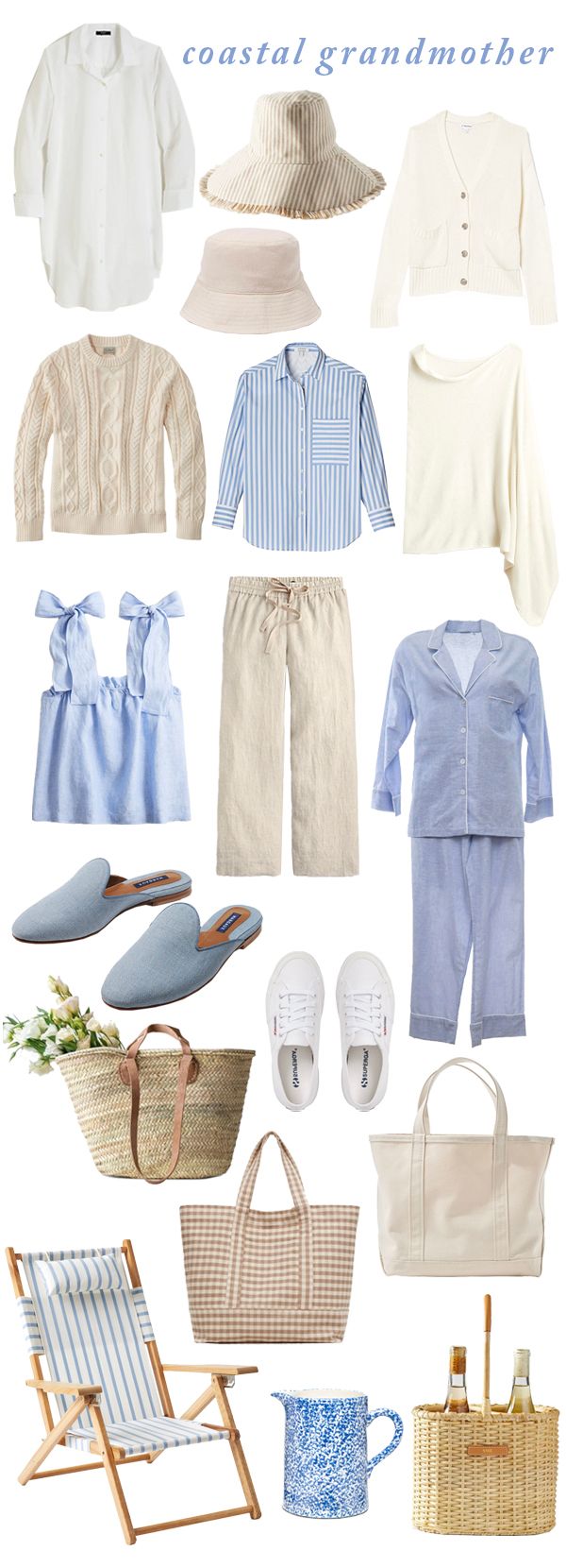 The Coastal Grandmother aesthetic - the look of a grandmother living on the coast.How to adopt the Coastal Grandmother trend without getting old? the Coastal Grandmother look