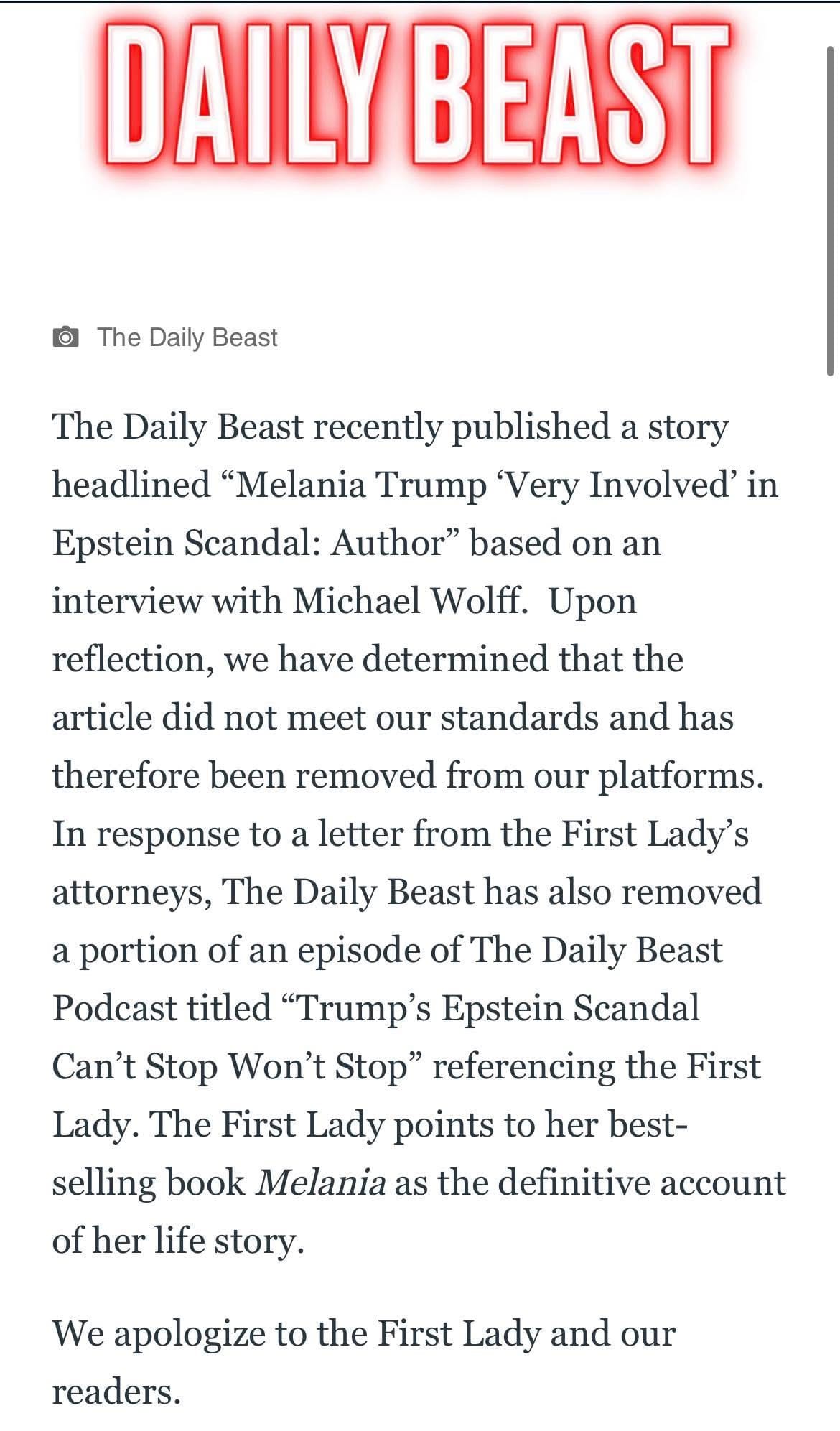 - Daily Beast Melania Trump retraction
